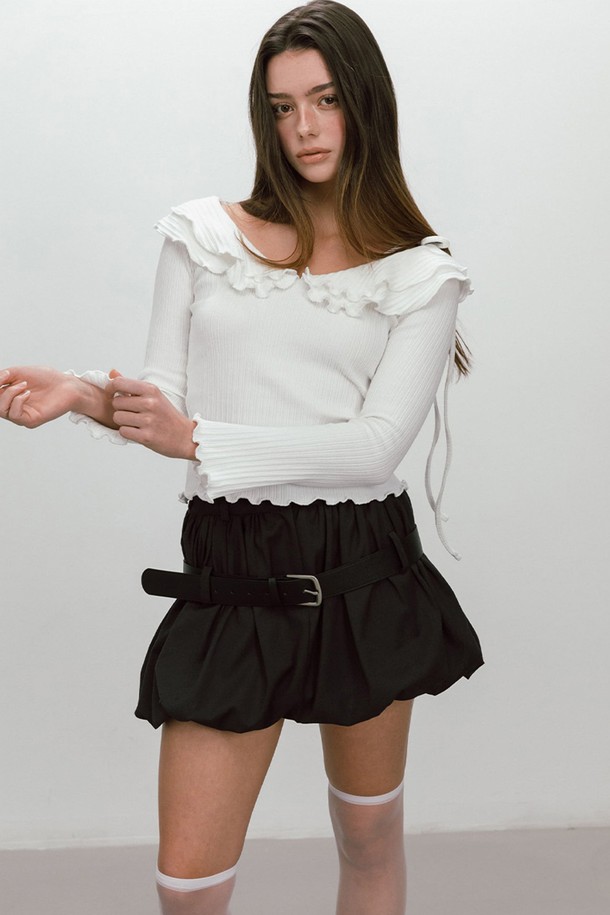BELTED BALLOON SKIRT / CHARCOAL
