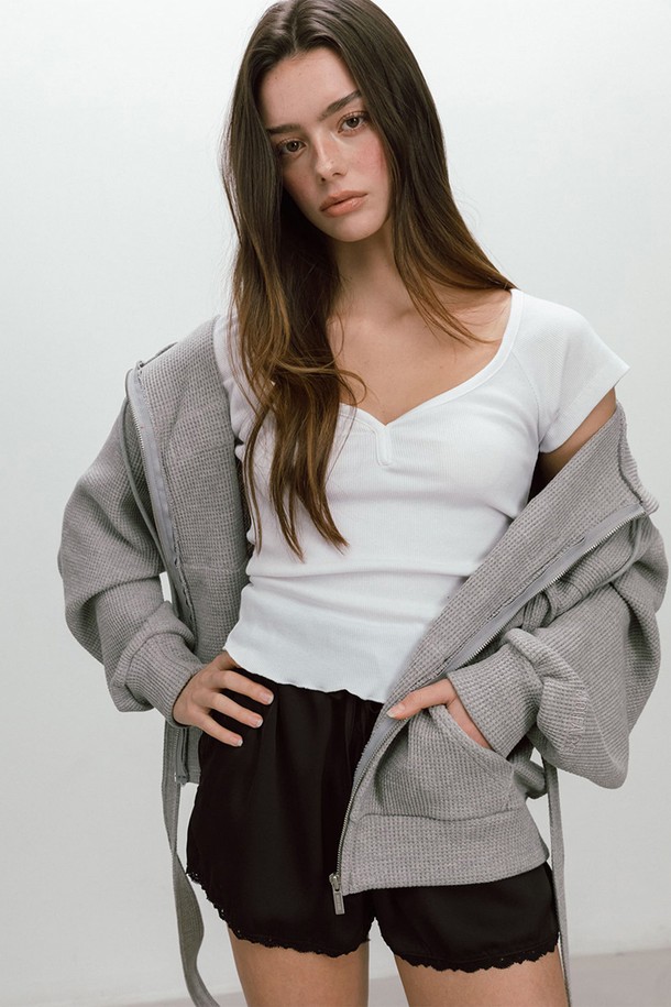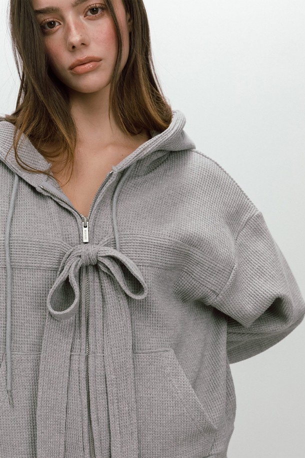 RIBBON WAFFLE HOODIE / GREY