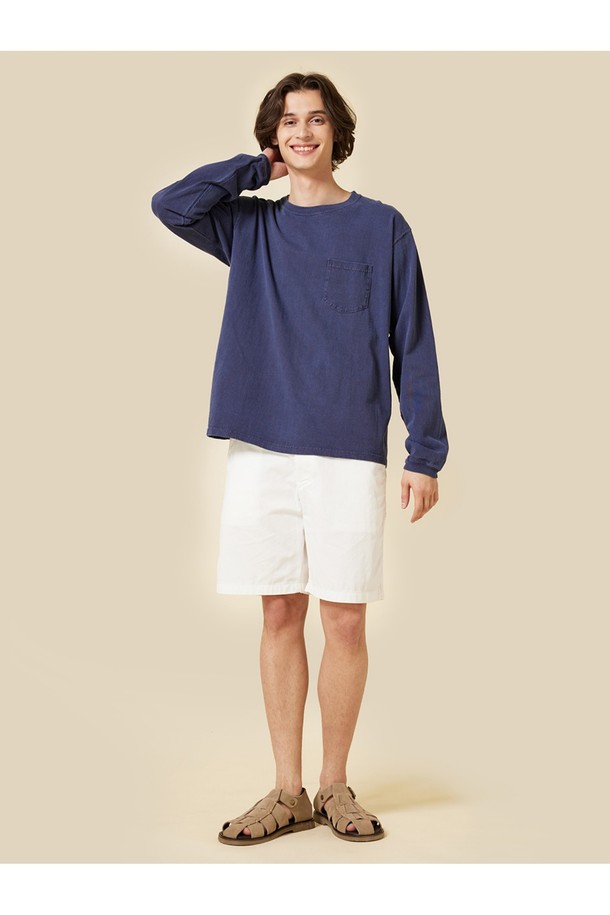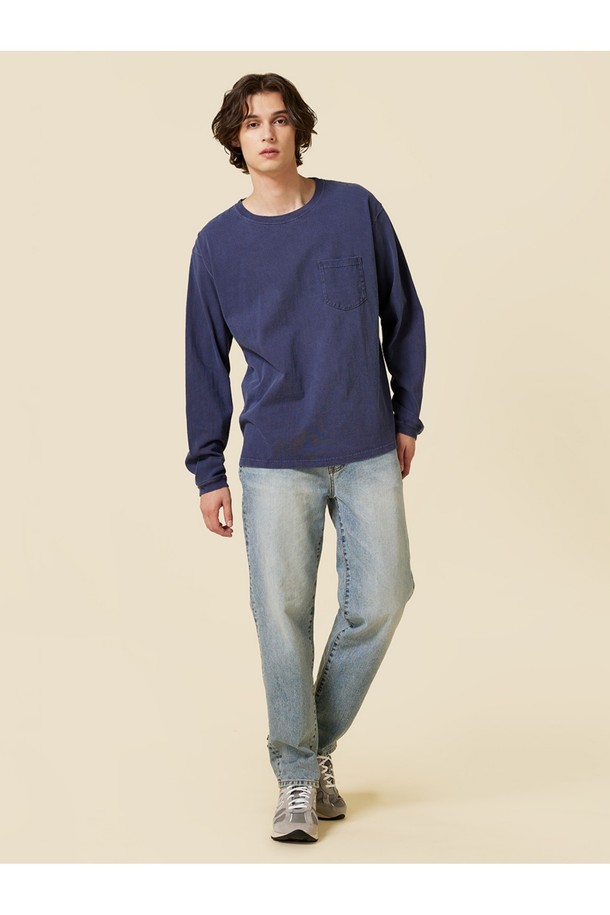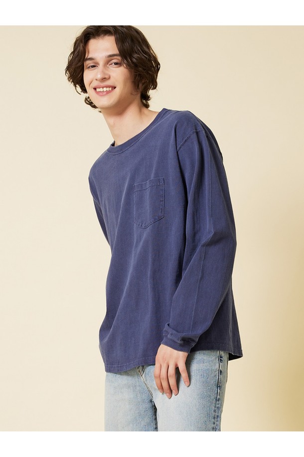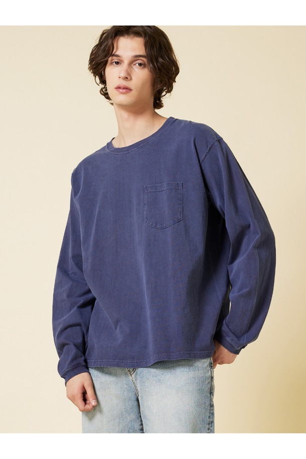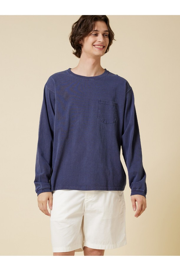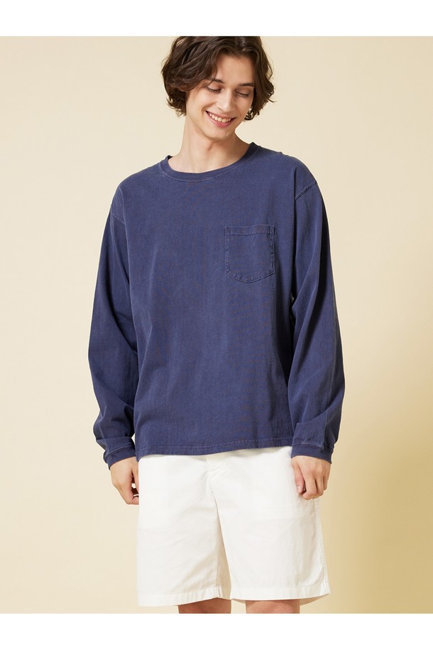 피그먼트 다잉 포켓 긴팔 티셔츠 - 네이비