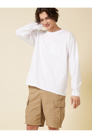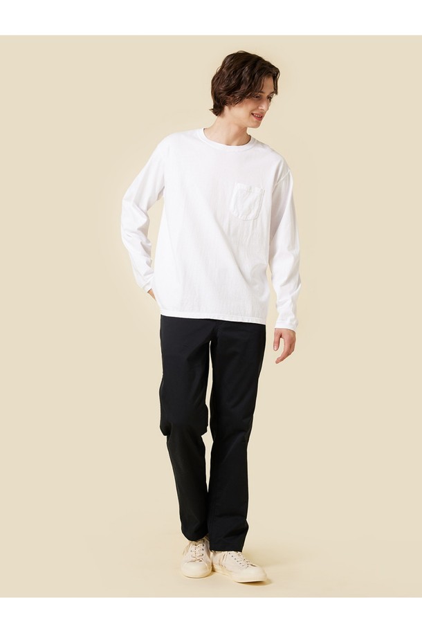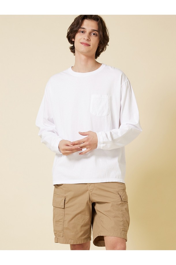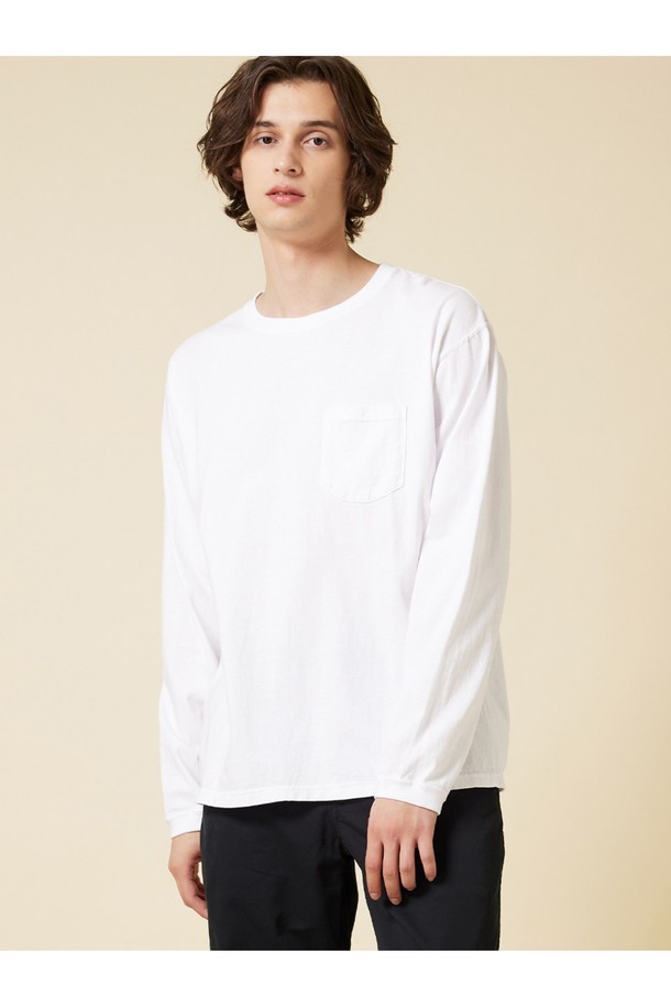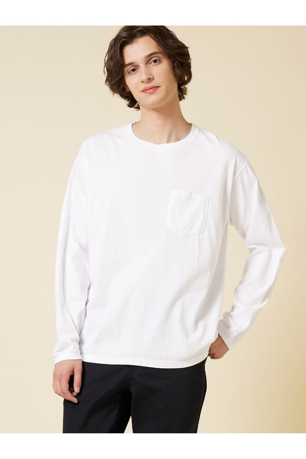 피그먼트 다잉 포켓 긴팔 티셔츠 - 화이트