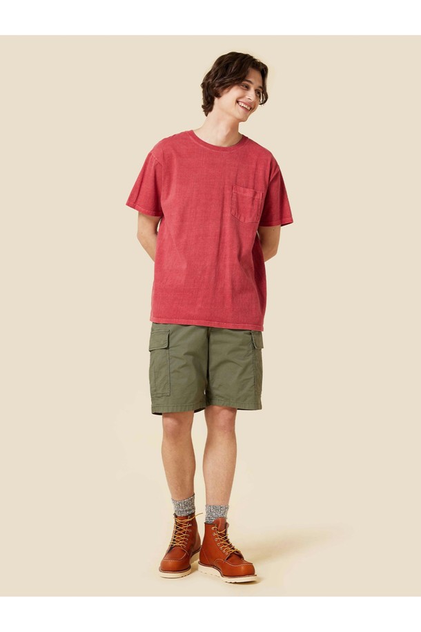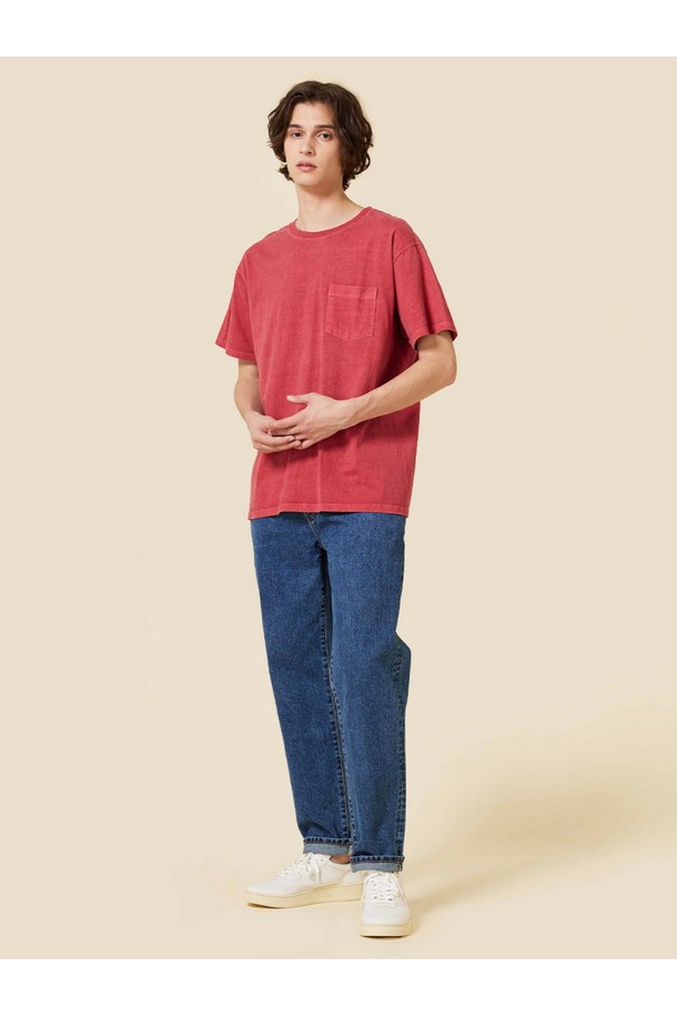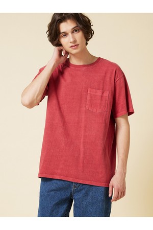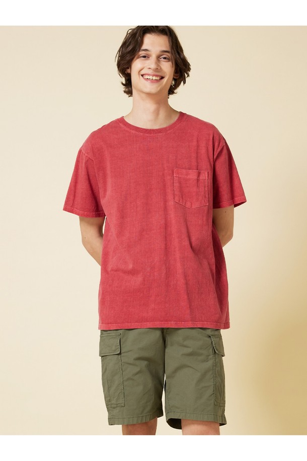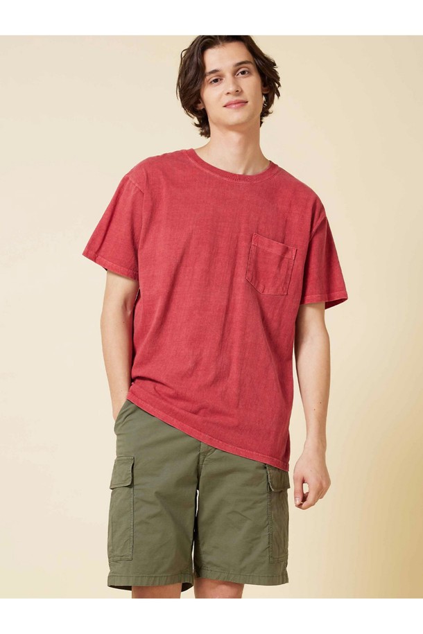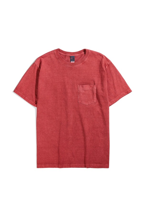 피그먼트 다잉 포켓 반팔 티셔츠 - 레드