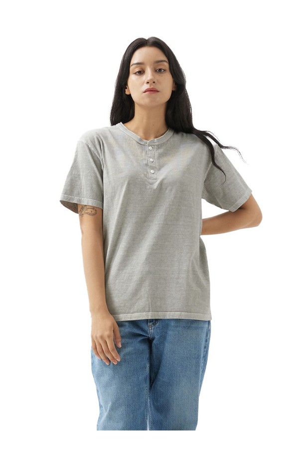 헨리넥 반팔 티셔츠 - 피그먼트 애쉬