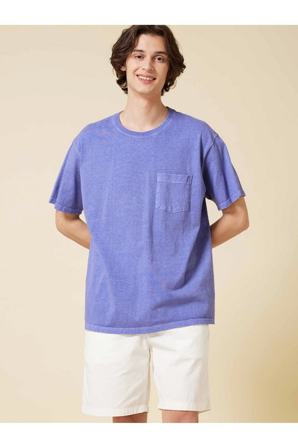 피그먼트 다잉 포켓 반팔 티셔츠 - 퍼플