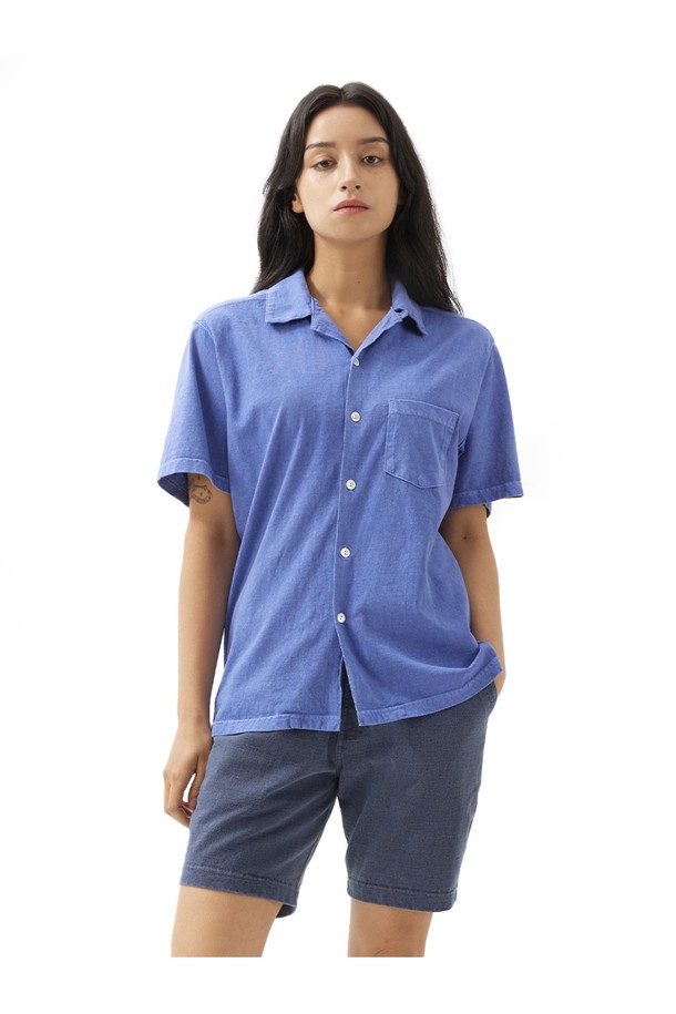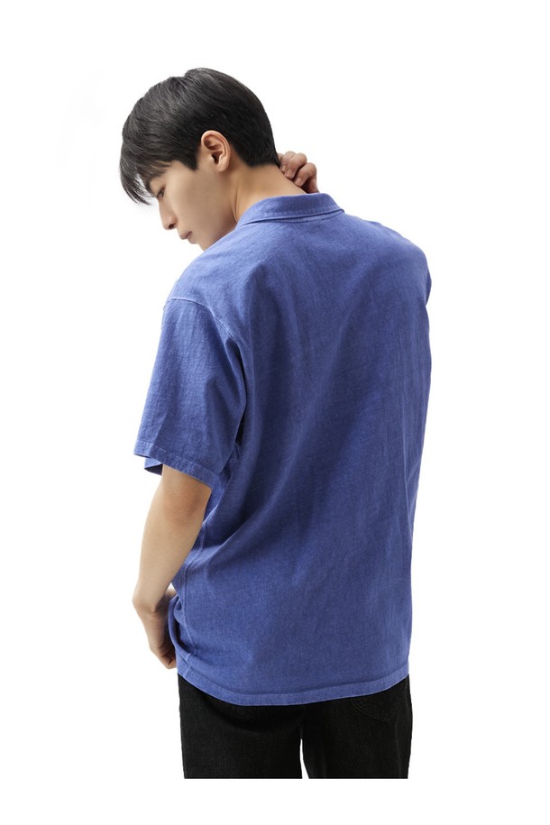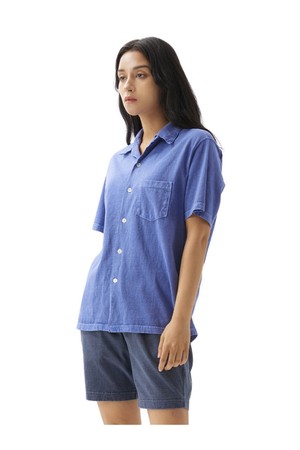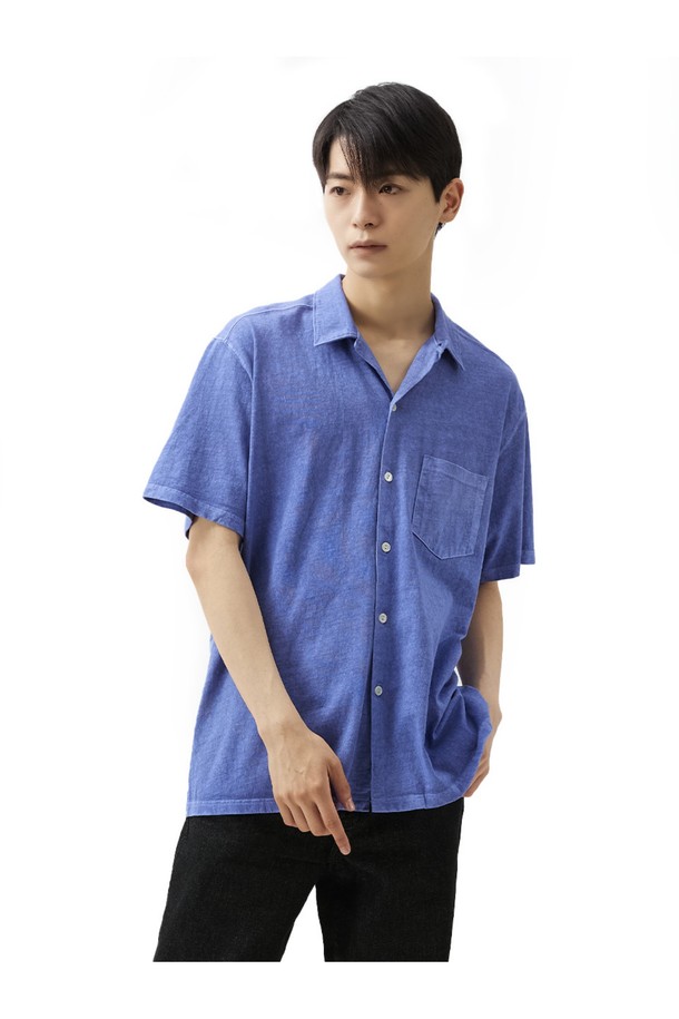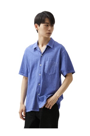 오픈 카라 반팔 셔츠 - 피그먼트 퍼플