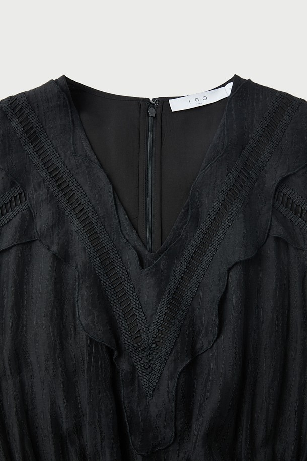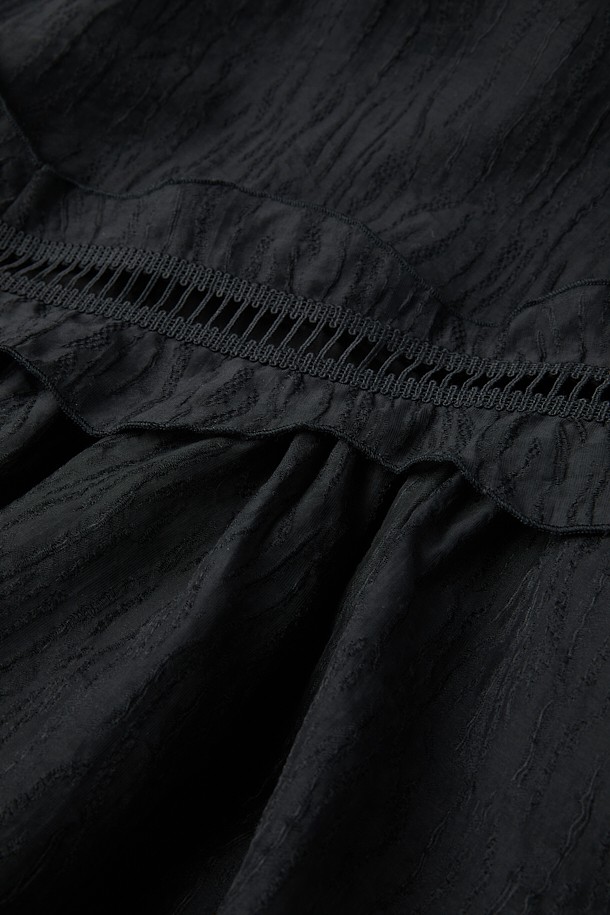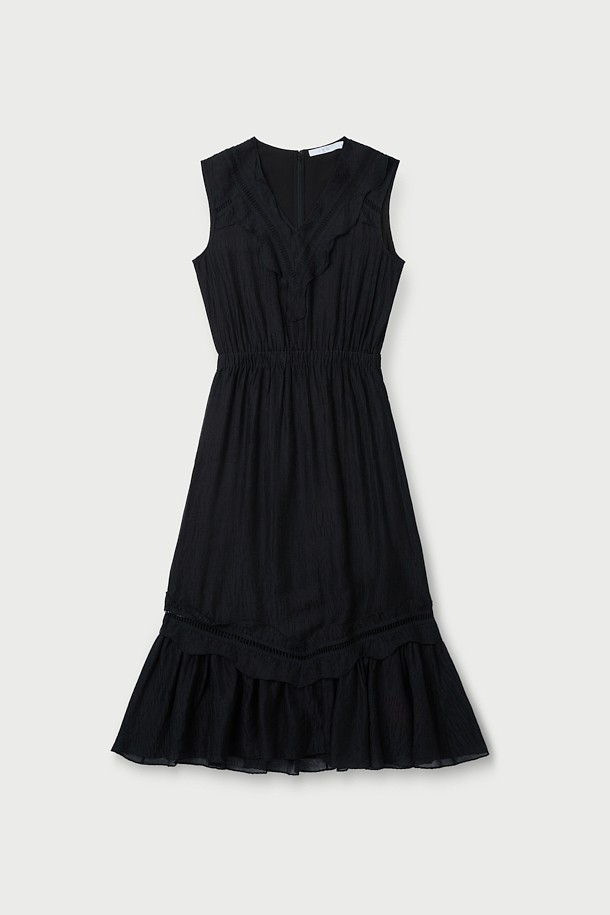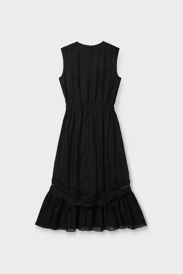 RO ELAINESPE 자카드 러플 슬리브리스 드레스