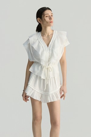 JALISSA 러플 타이드 벨트 버튼 블라우스