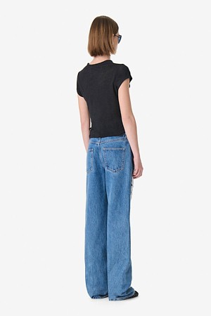 SYBEL 리넨 브이넥 슬림 티셔츠