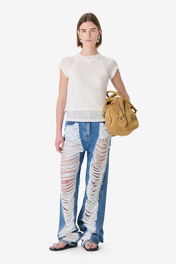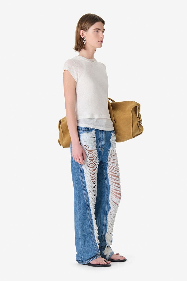SYBEL 리넨 브이넥 슬림 티셔츠