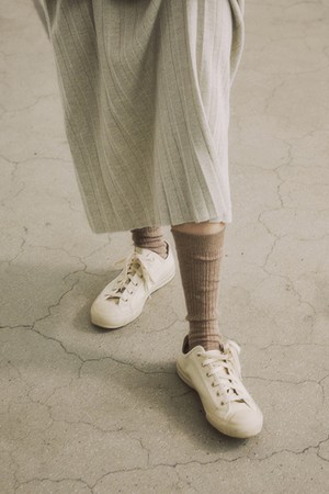 BEIGE COTTON BLEND KNEE HIGH SOCKS