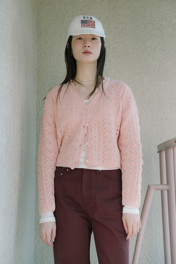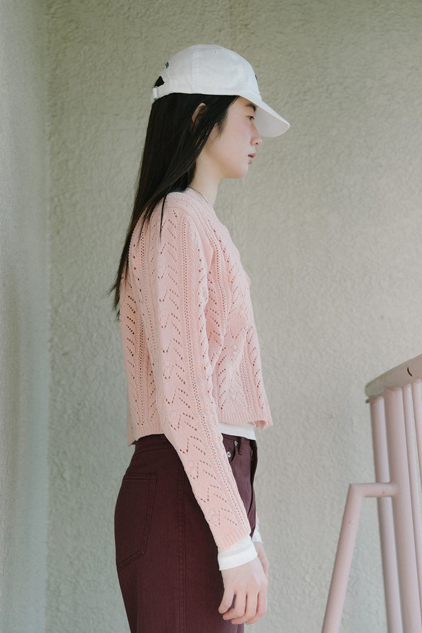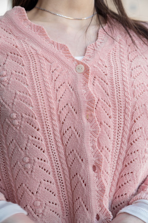 VELVET TEXTURED CARDIGAN_LIGHT PINK