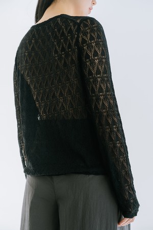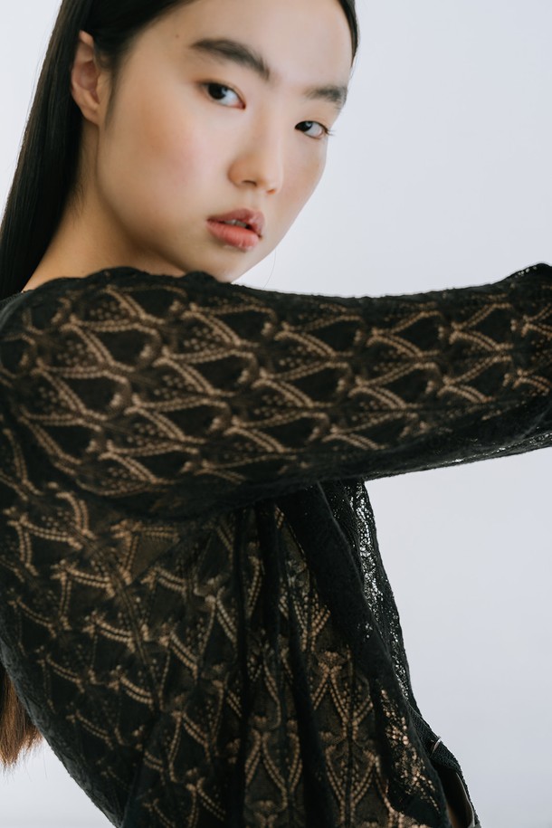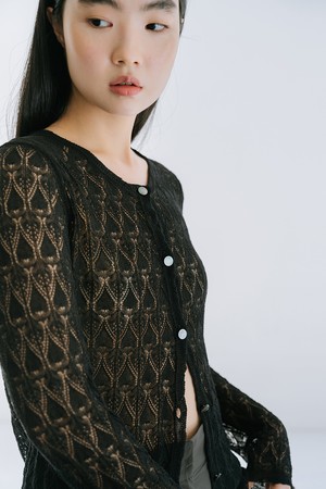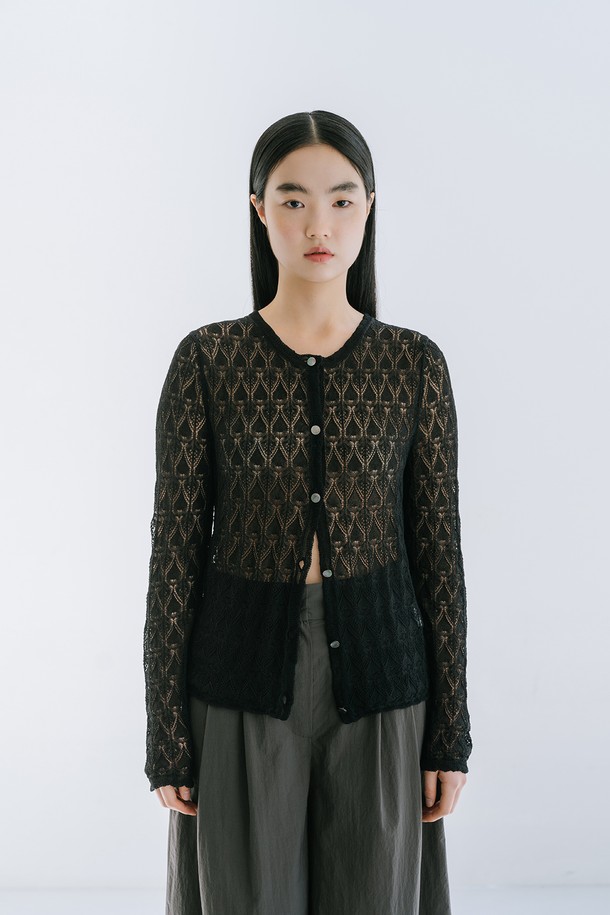 VISCOSE BLENDED LACE CARDIGAN_BLACK