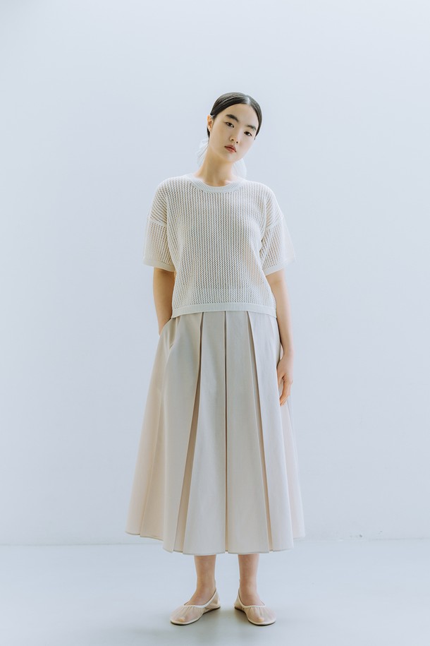 TEXTURED PLEATS SKIRT_PALE BEIGE