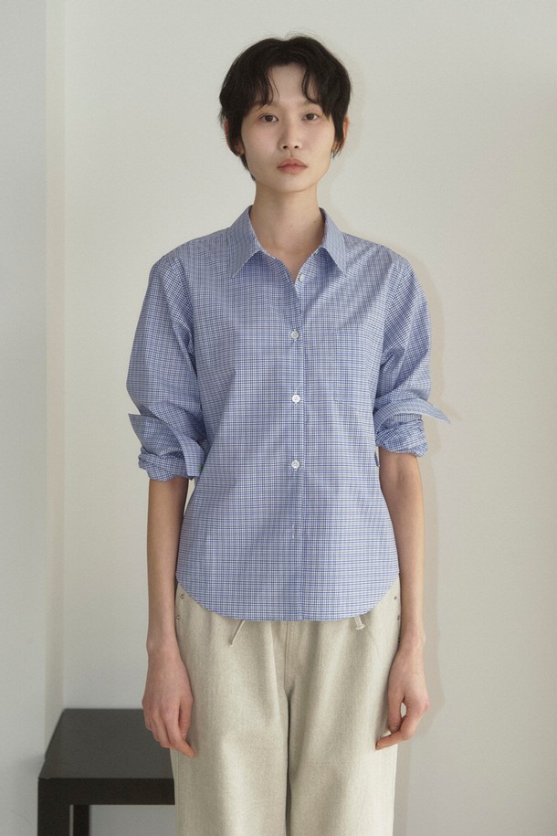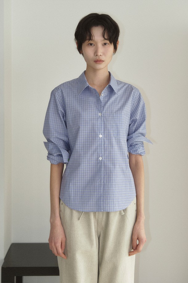 COLOR POINT BUTTON CHECK SHIRT_BLUE