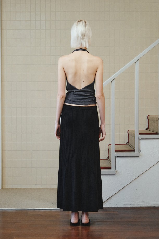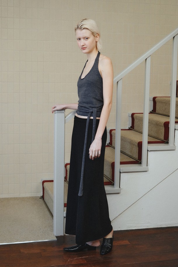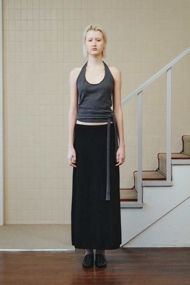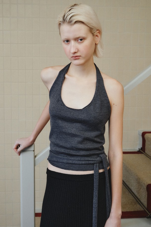 WOOL HALTER WRAP VEST_DARK GREY