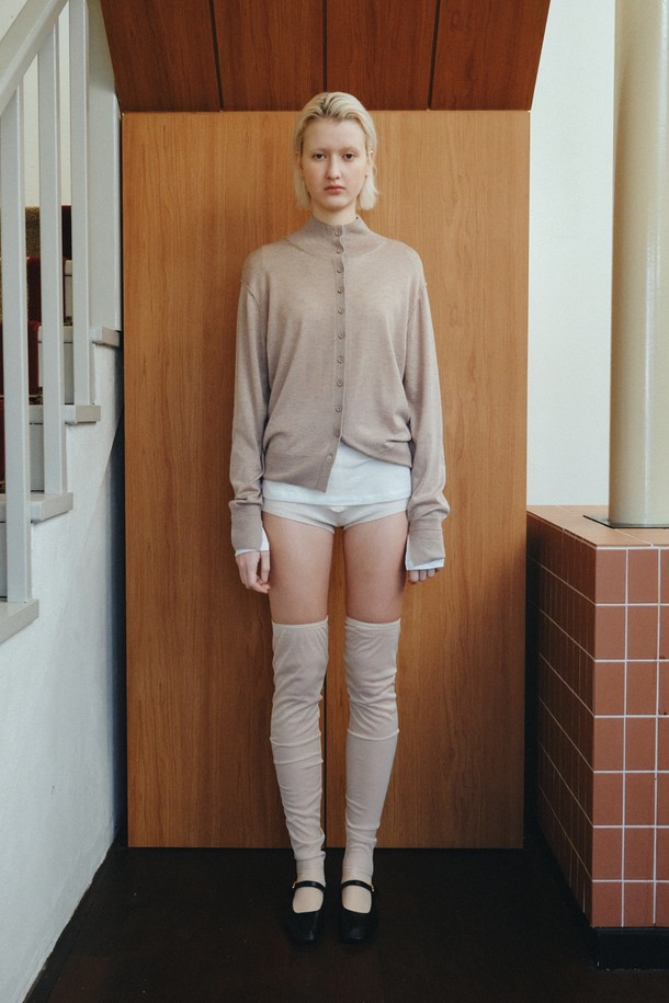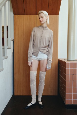 WOOL BLEND HIGH NECK CARDIGAN_BEIGE
