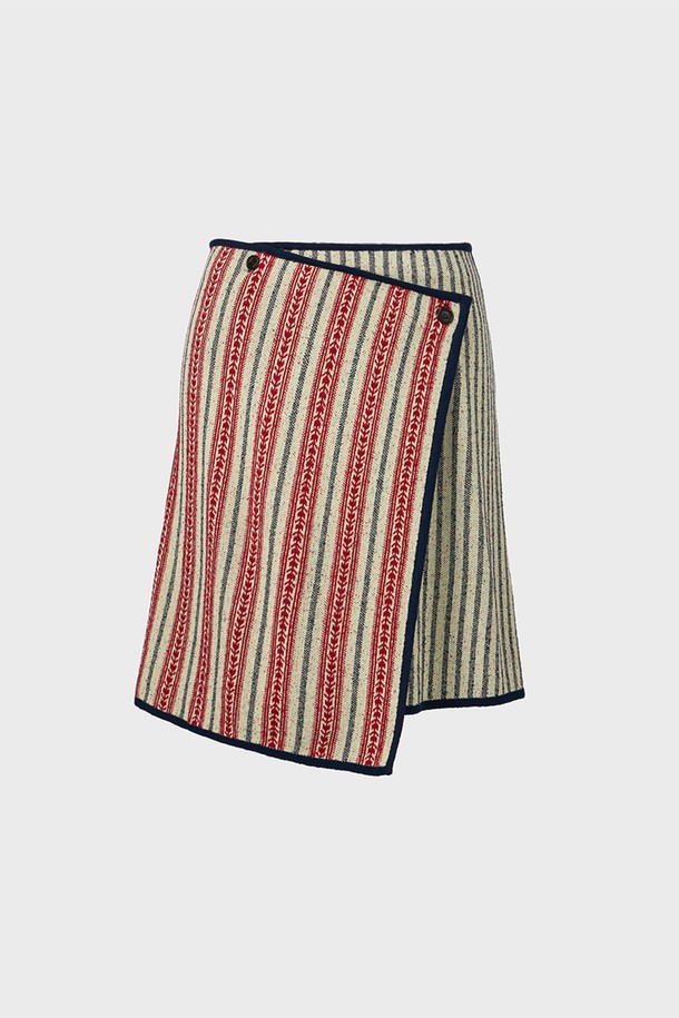 자카드 니트 랩 스커트 - 레드