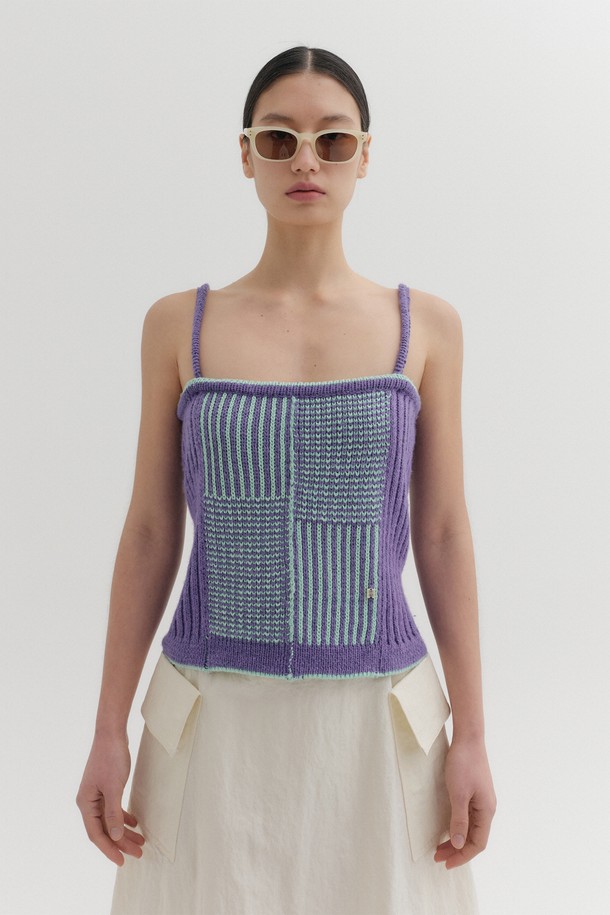 텍스처 슬리브리스 니트 탑 - 바이올렛