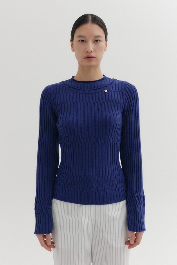 레이어드 니트 탑 - 네이비