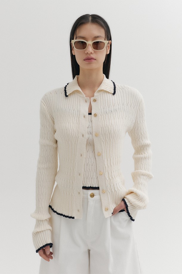 콘트라스트 버튼 니트 가디건 - 아이보리