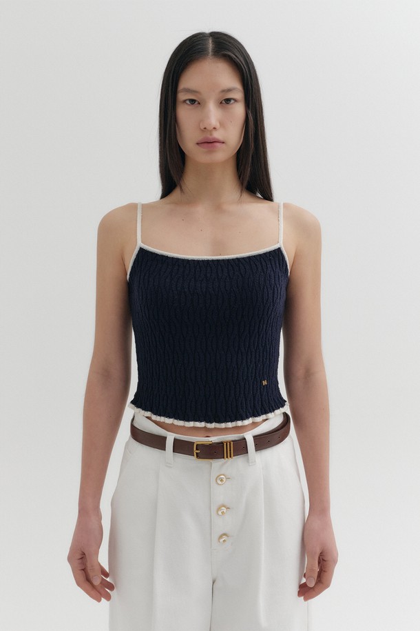 콘트라스트 슬리브리스 니트 탑 - 네이비
