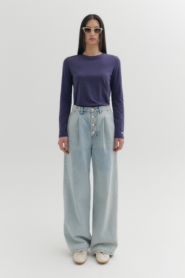 003 하이 버튼 와이드 데님 - 라이트 블루