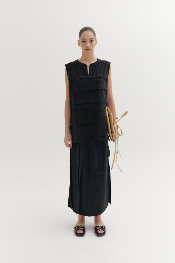 패널 디테일 스커트 - 블랙