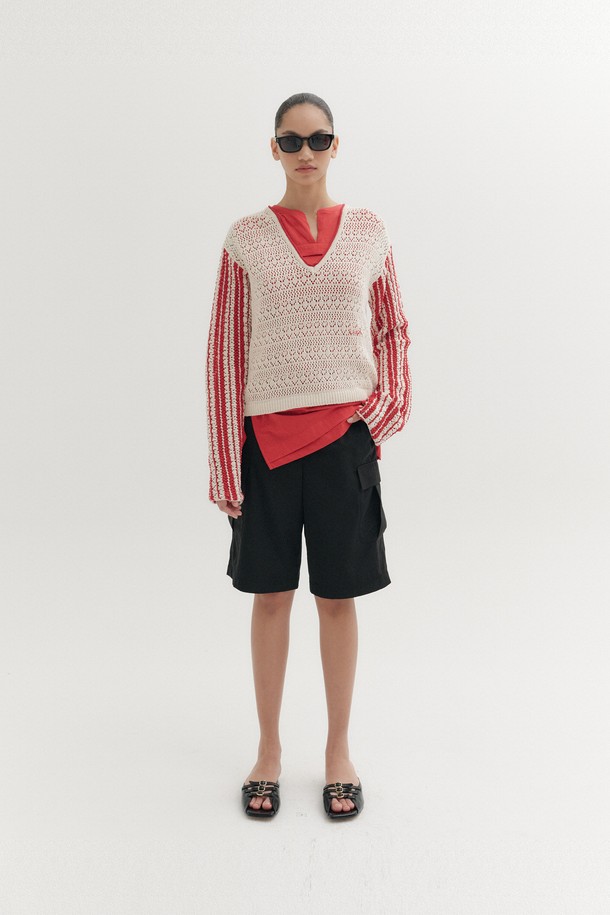 콘트라스트 브이넥 풀오버 - 아이보리