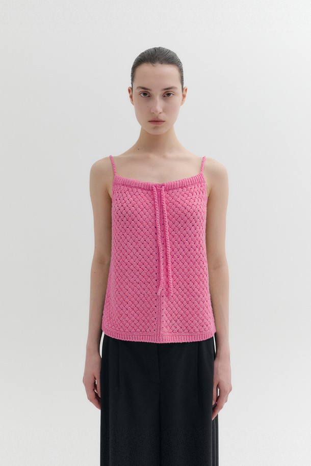 크로셰 타이 스트랩 니트 탑 - 핑크