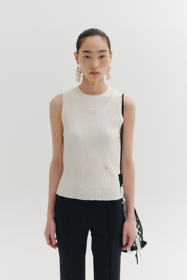 슬리브리스 레이어드 니트 탑 - 아이보리