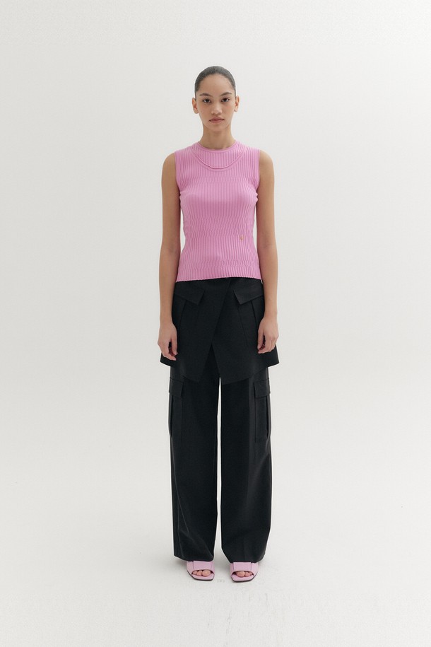 슬리브리스 레이어드 니트 탑 - 핑크