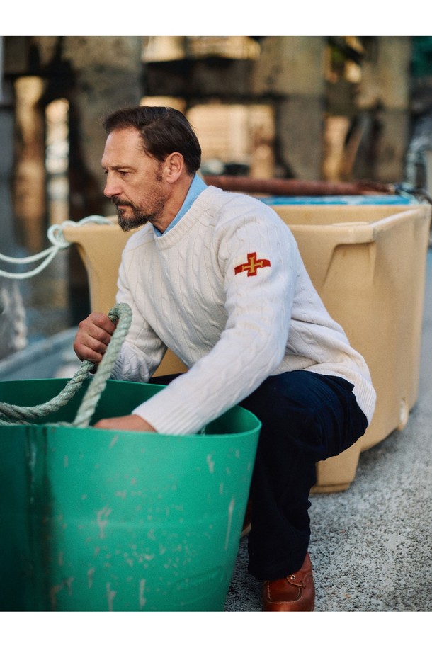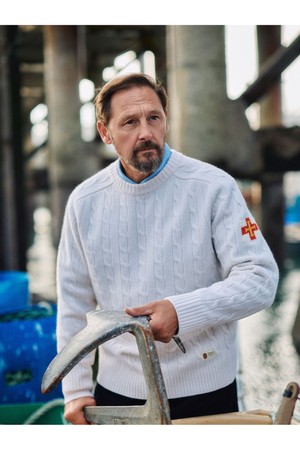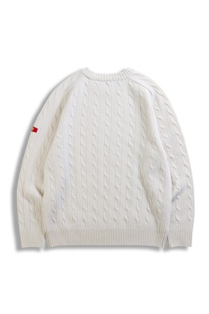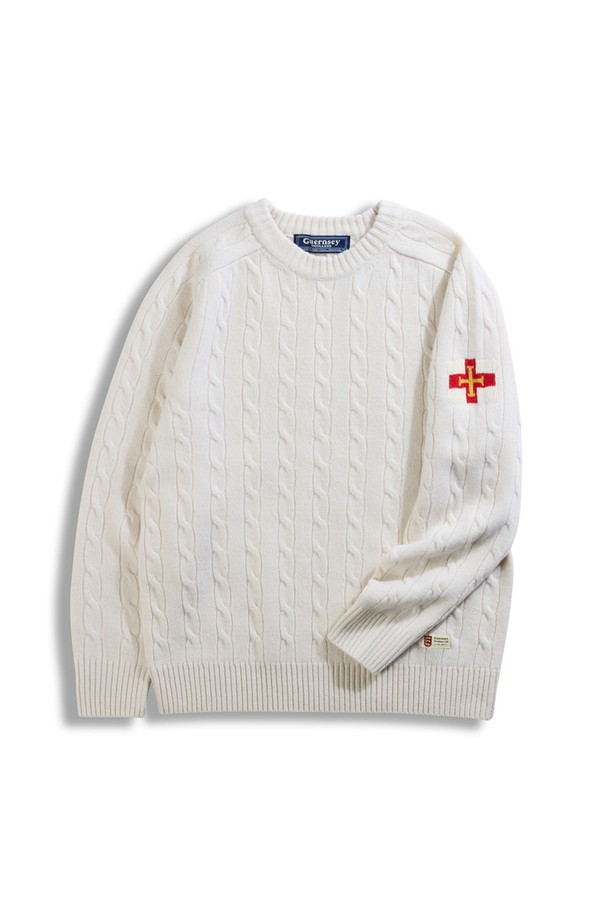 슈퍼 파인 메리노울 케이블 스웨터 - 에크루