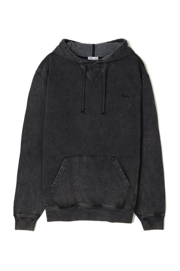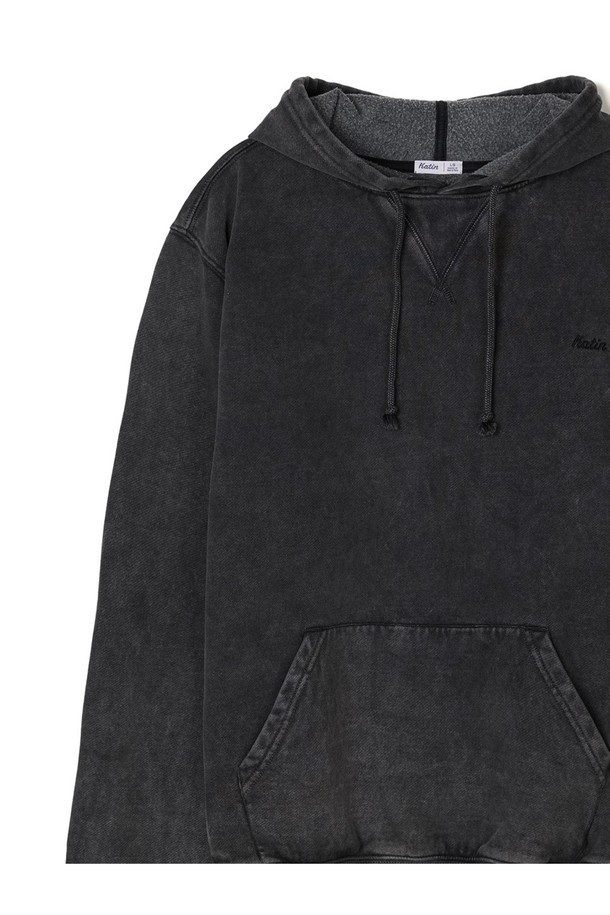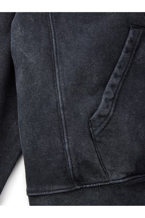 EMB 플리스 후드티 - 블랙 워시 미네랄