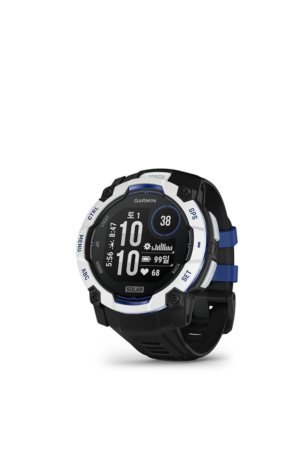 가민 인스팅트 3 50mm 솔라 슈퍼노바 화이트스톤 블랙 멀티스포츠 GPS 스마트워치는 스포티, 아웃도어, 캐주얼 스타일을 아우르는 공용 스마트워치입니다. 50mm 원형 케이스에 블랙, 화이트, 블루 컬러 조합이 돋보이며, 실리콘 스트랩과 강화유리, 폴리머 소재를 사용하여 내구성을 높였습니다. 러닝, 하이킹, 사이클, 피트니스, 골프, 아웃도어 활동은 물론 일상생활에서도 활용 가능하며, GPS, 태양광 충전, 방수 기능을 지원합니다. 태양광 충전 방식으로 편리하게 사용 가능하며, 헬스케어 모니터링 기능으로 건강 관리에 도움을 줍니다. 러닝룩, 피트니스룩, 등산룩 등 다양한 TPO에 매치하여 스타일리시하게 연출할 수 있습니다.