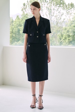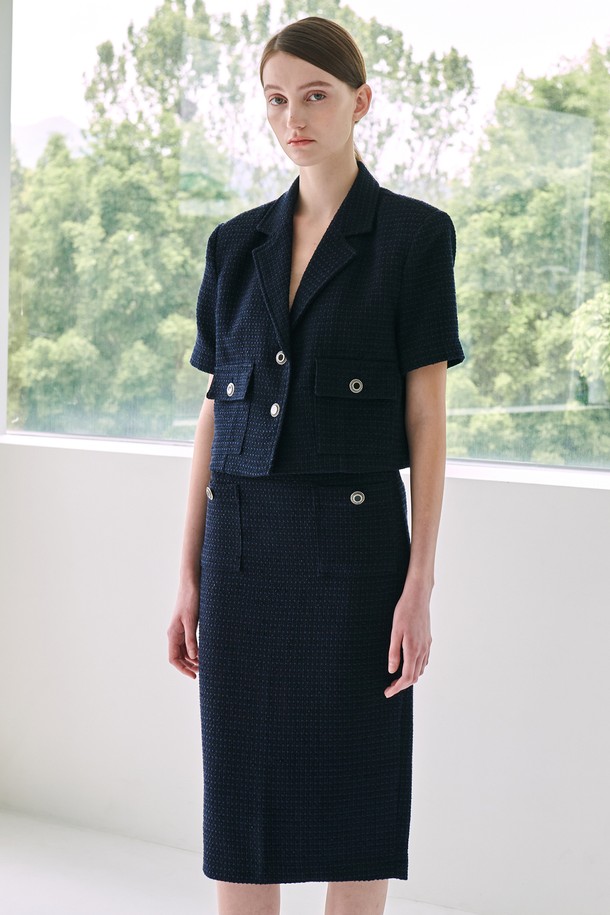 트위드 포켓 스커트 - 딥 네이비 / Tweed Pocket Skirt - Deep Navy