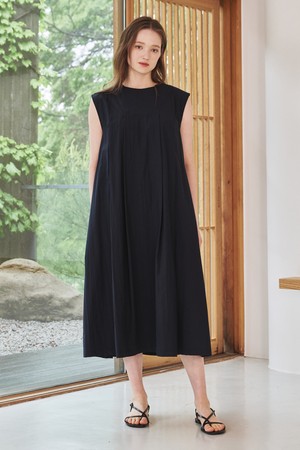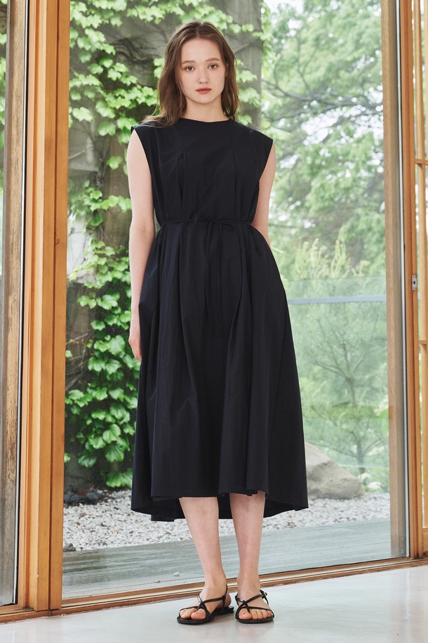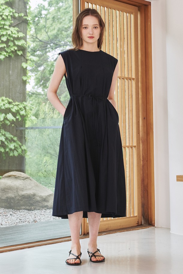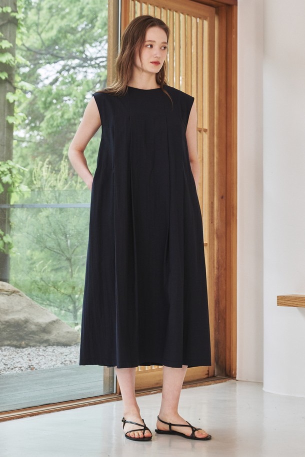 슬리브리스 플리츠 원피스 - 네이비 / Sleeveless Pleats Dress - Navy