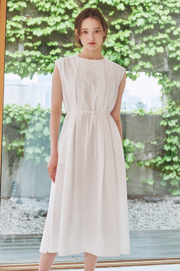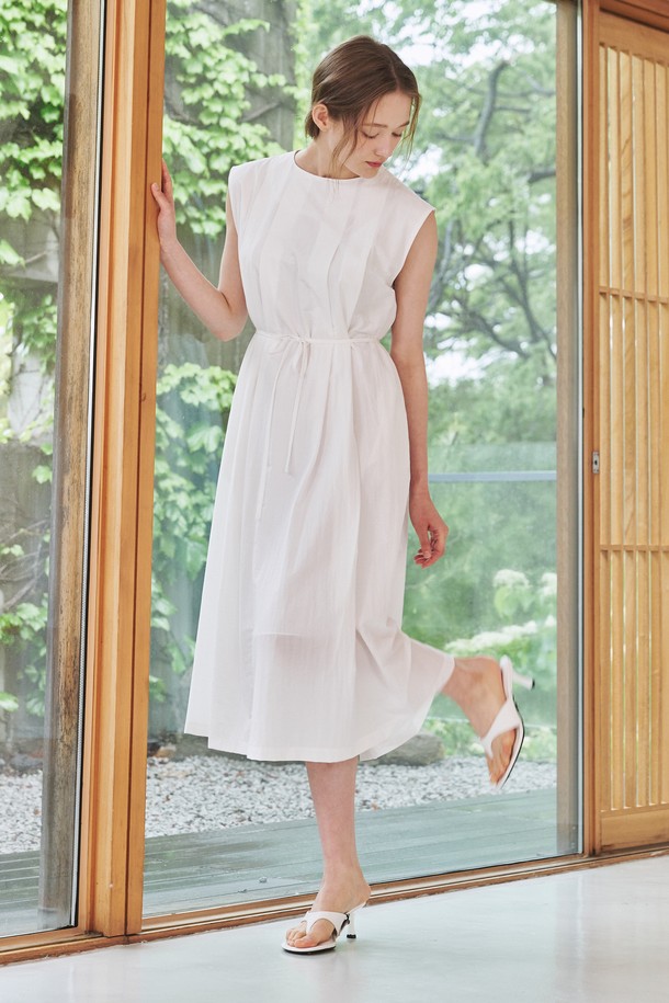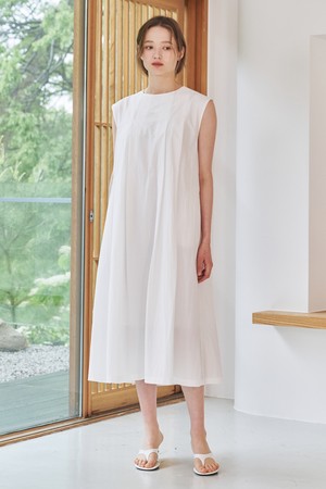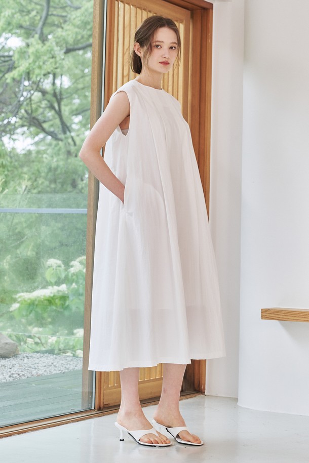 슬리브리스 플리츠 원피스 - 화이트 / Sleeveless Pleats Dress - White
