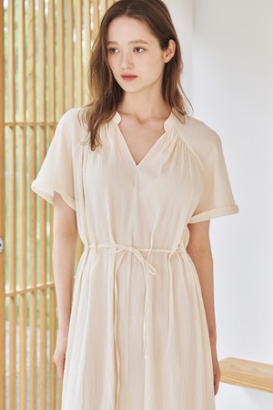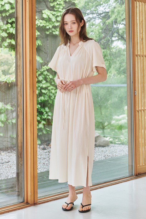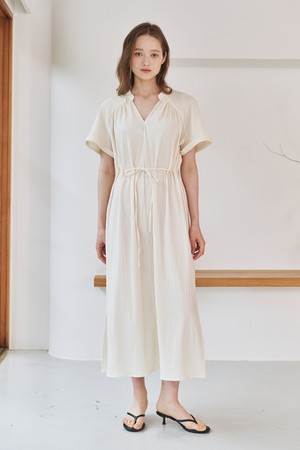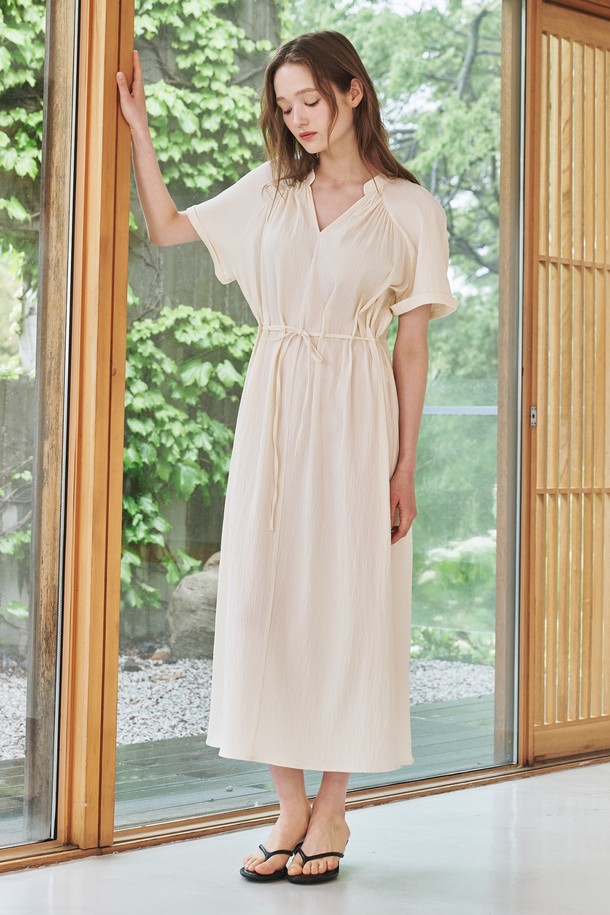 브이넥 셔링 드레스-아이보리 / V-Neck Shirring Dress - Ivory