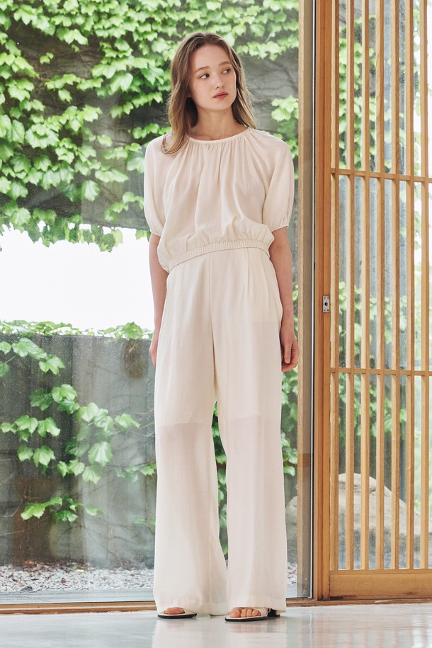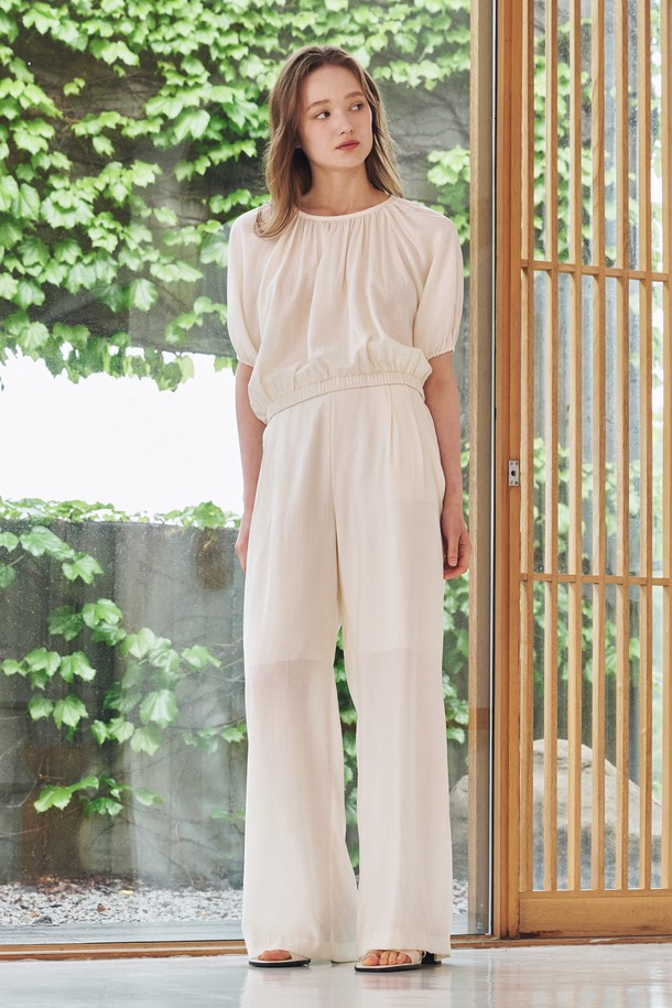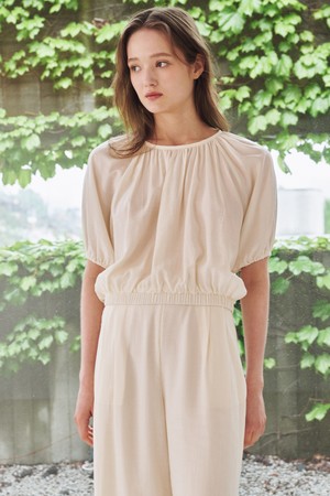 링클 셔링 라운드 블라우스 셋업 - 아이보리 / Wrinkle Shirring Round Blouse Set Up - Ivory