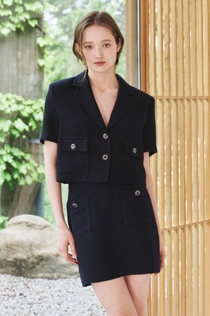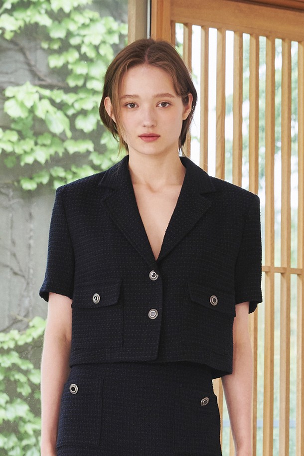 썸머 트위드 크롭 자켓 - 딥 네이비 / Summer Tweed Crop Jacket - Deep Navy