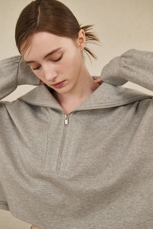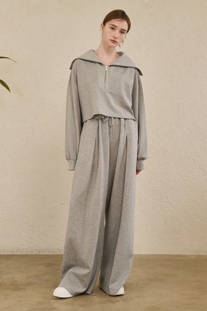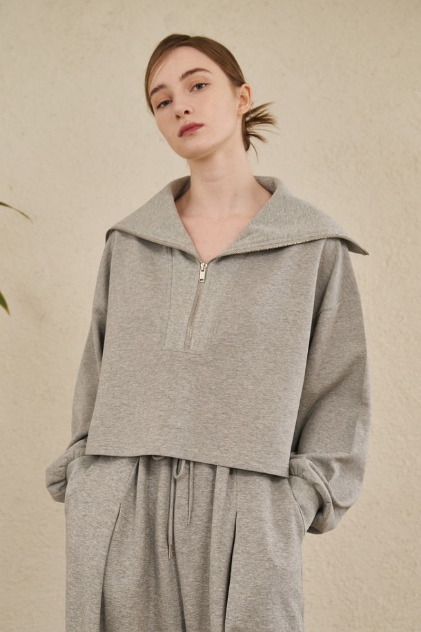 Wide Collar Crop T-Shirts - M. Gray