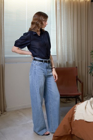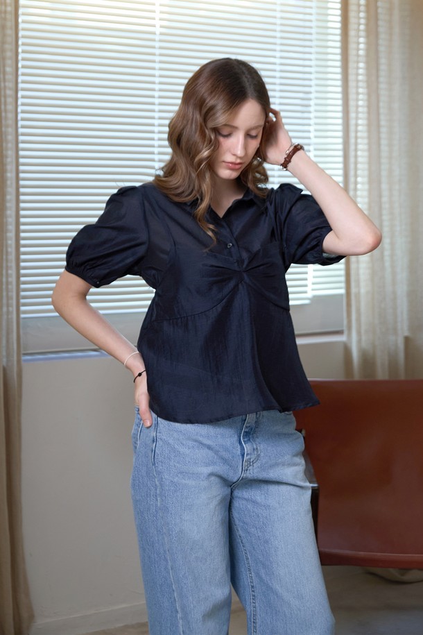 [SET] 텐셀 뷔스티에 카라 블라우스세트_NAVY