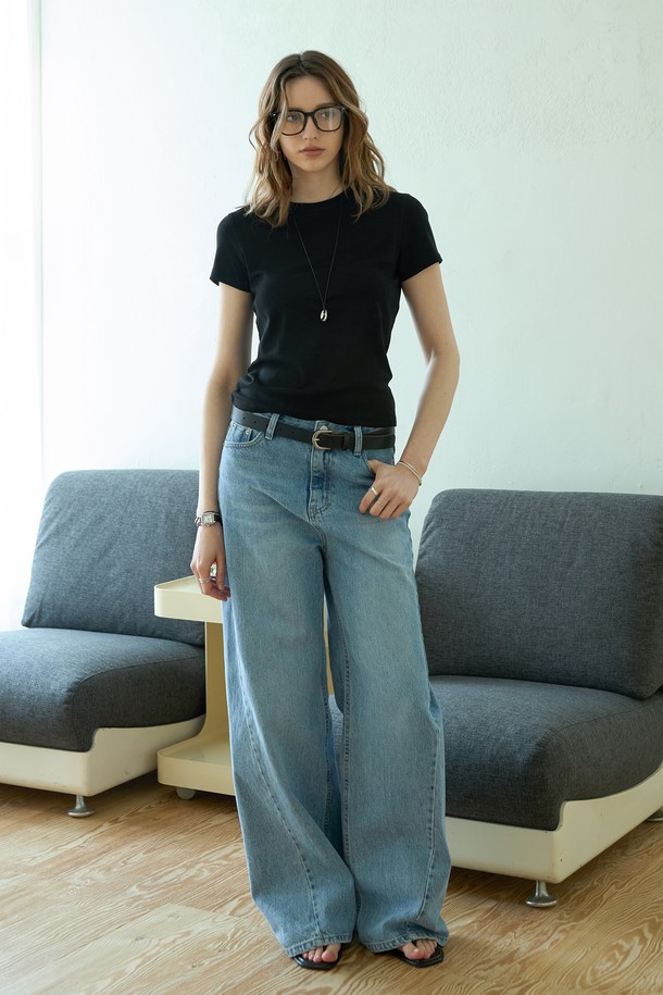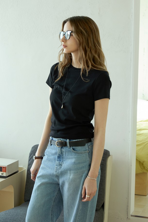 코튼 슬림 베이직티셔츠_BLACK