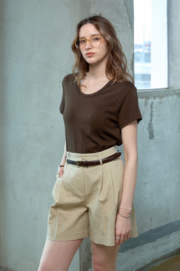 텐셀 코튼 유넥티셔츠_BROWN