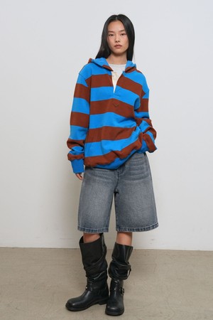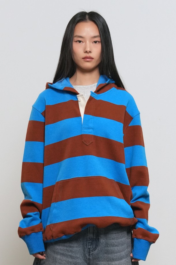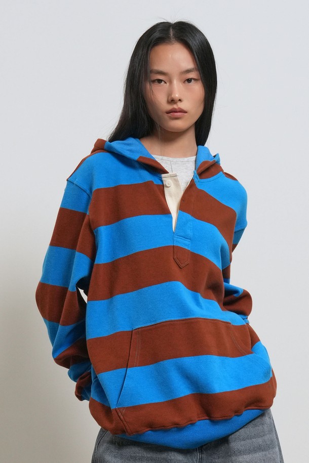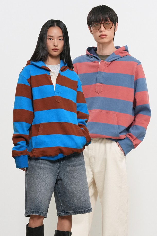 [26SS] UNISEX 오픈 버튼 스트라이프 후드티 [3COL] / GF1UTS002