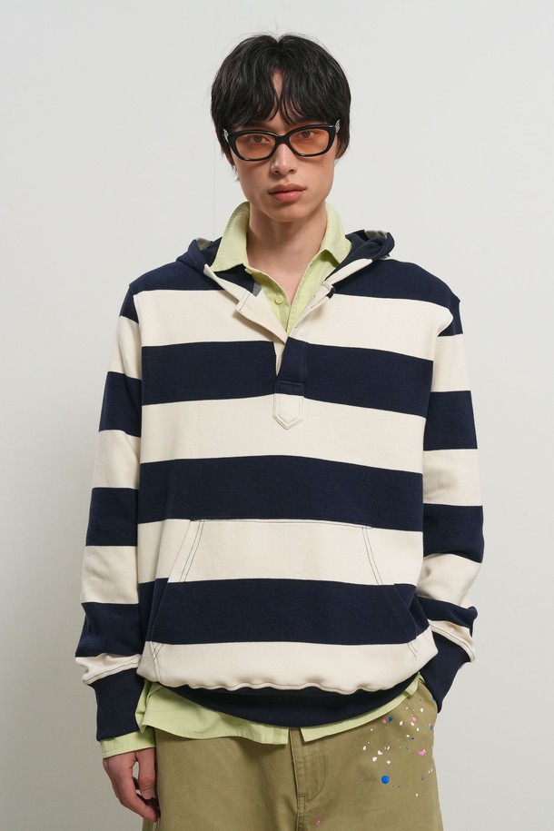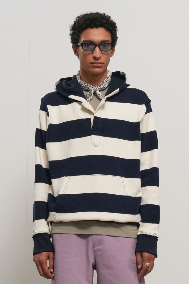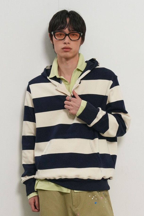 [26SS] UNISEX 오픈 버튼 스트라이프 후드티 [3COL] / GF1UTS002