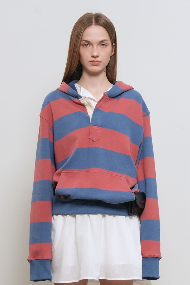 [26SS] UNISEX 오픈 버튼 스트라이프 후드티 [3COL] / GF1UTS002