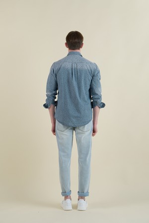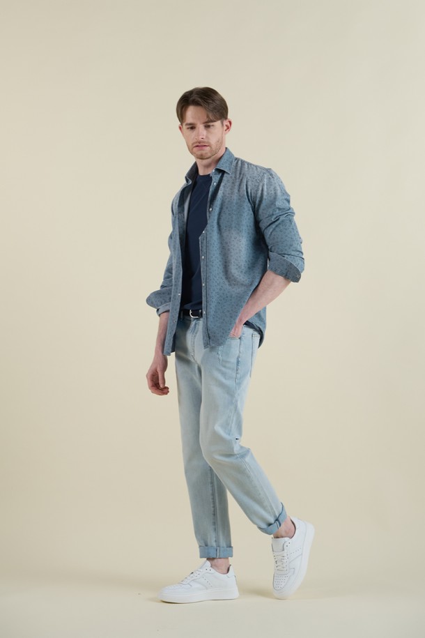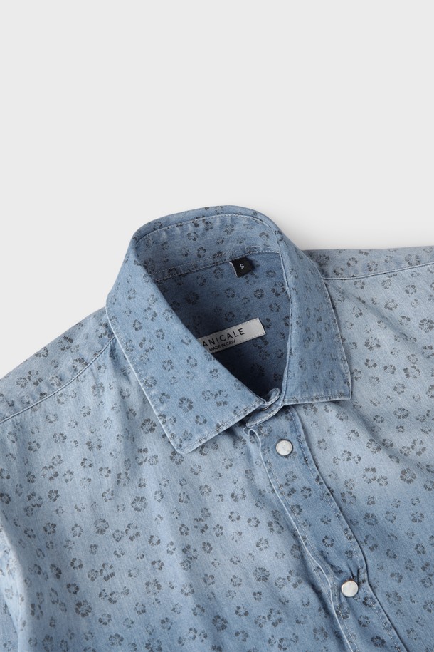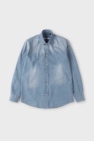 플라워 패턴 워시드 데님 셔츠 F-QCSH03