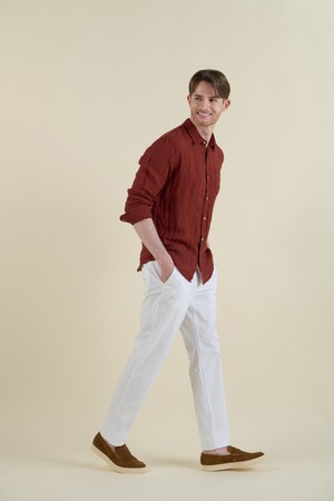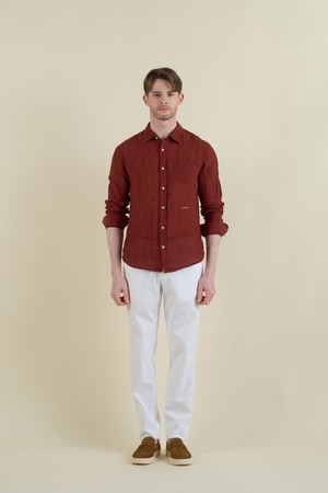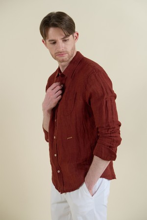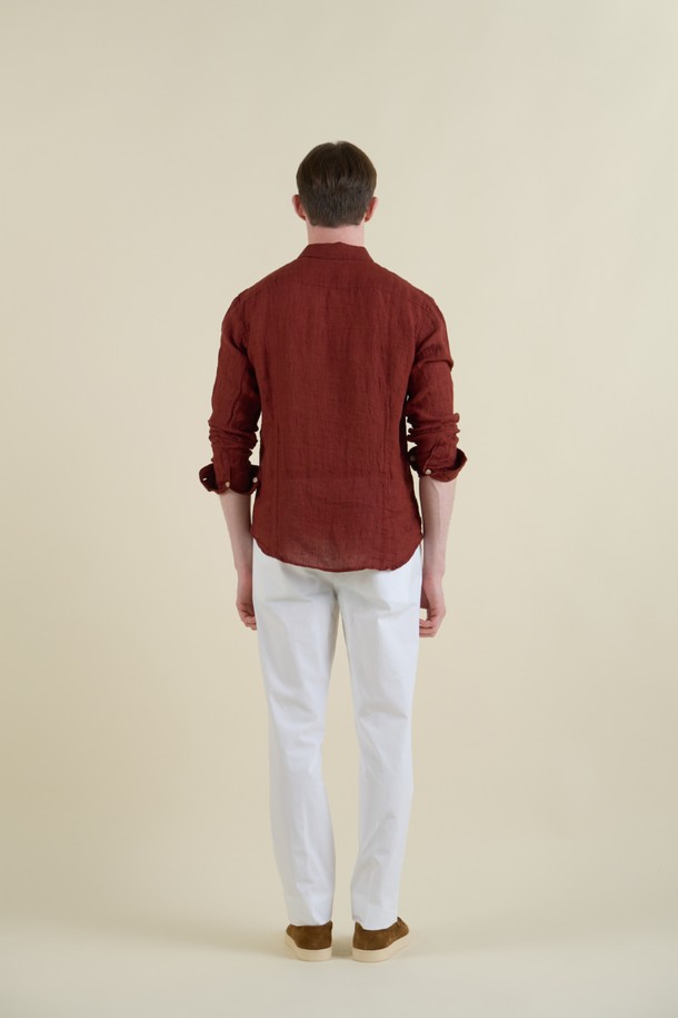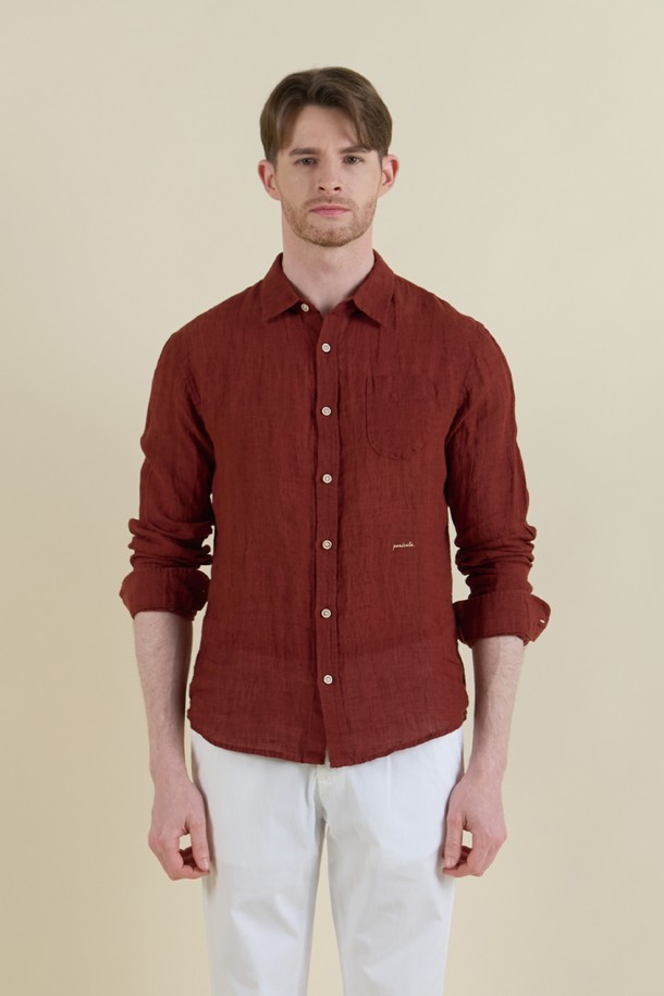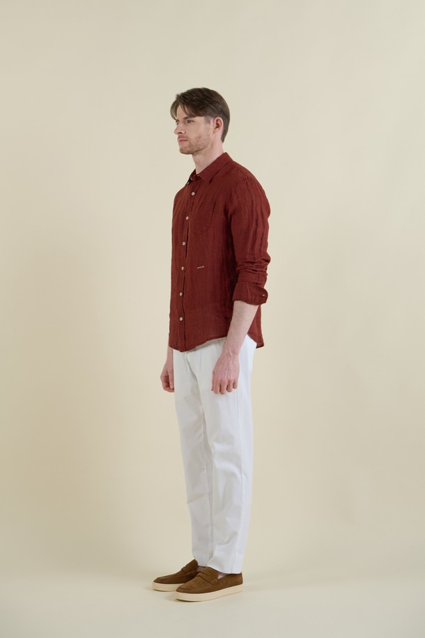 레드 리넨 워시드 포켓 셔츠 D-QCSH19