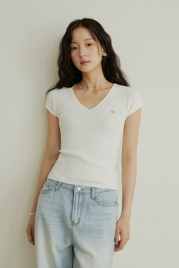 Summer v neck golgi cap sleeve knit - 2color