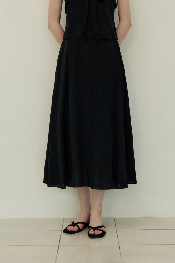 Flare line summer cool long skirt - black